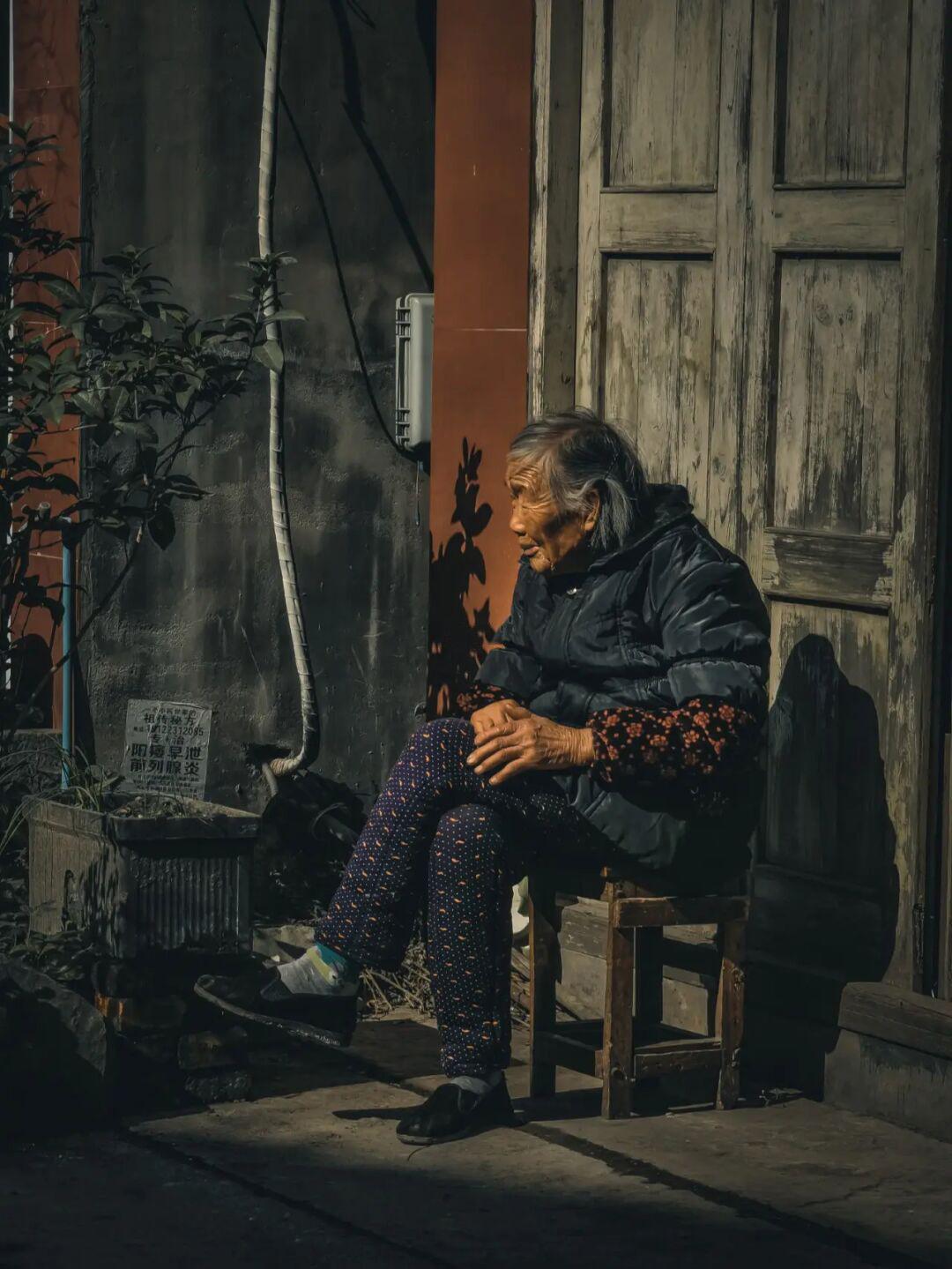 盖石老街坐着休息的老人