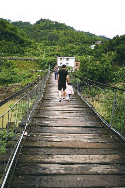 行走在甩甩桥上的盖石居民