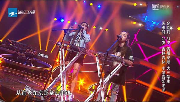 首先上场的是“金色炸弹组合”孟维轩和金玲莉,一个来自吉林,一个来自安顺,堪称南北之合,她们自创了《周杰伦的很多很多很多首歌》一开始是口技,说实话有点像小娃儿嘟口水。难得的是,她们把周杰伦的11首歌(其中7首仅有歌名)融入歌词,采用说唱的形式唱出来,其中包含了大量的口技。最终,获得了周杰伦老师的青睐,并称“金色炸弹组合”正好可以和谢霆锋组的“double安琪”PK一下。