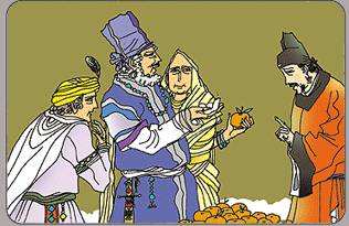哪想,这“洞庭红”听上去名字好听,却是当地的次品,大家连碰也不碰一个,以致到了目的地,还没有开箱。文若虚心想已经坏了,便打开检查一番,谁知打开后柑橘却完好无损,在太阳的照射下发出红灿灿的金光,吸引了当地顾客的注意。更幸运的是,首先就来了一个克汗身边的达官贵人,尝了一个觉得味道不错,便买了十个。在他的带头下,大家纷纷排队购买,不一会就买了一大半。文若虚此时坐地起价,后来干脆不卖了,直到第一个买橘子的人返回以极高的价格全部买完。