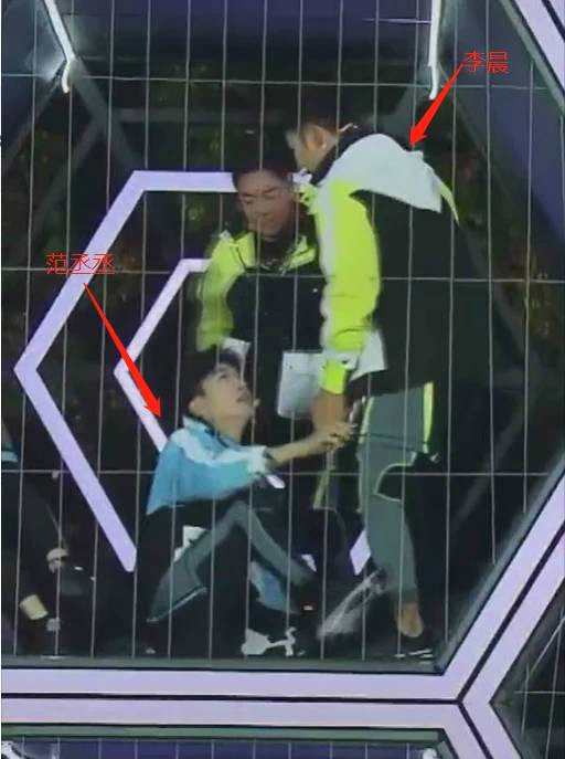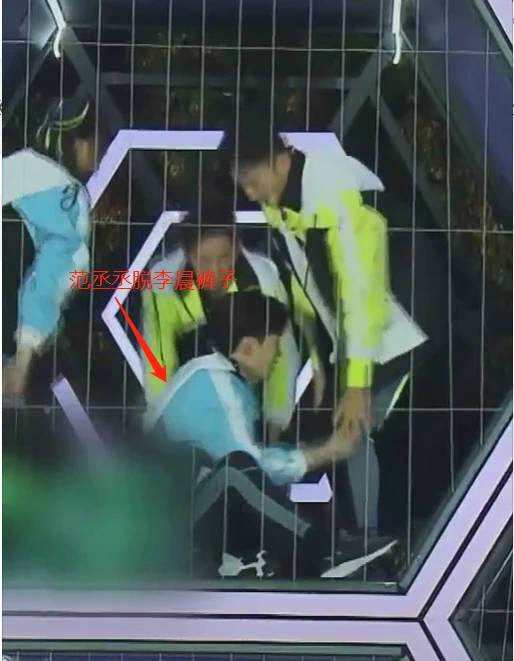 只见范丞丞为了拦住李晨,不惜坐在地上挡住他的去路。