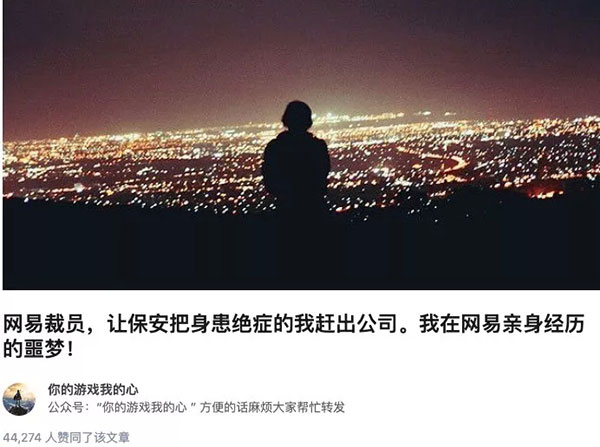 昨天,一篇名为《网易裁员,让保安把身患绝症的我赶出公司。我在网易亲身经历的噩梦》文章刷屏了朋友圈!