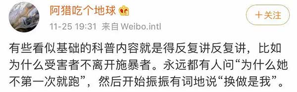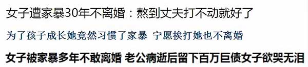 这给予我们的警醒不应该是拉个窝囊的女性做反面教材,用完美受害者的标准一刀砍下去,达不到标准的全都是自作自受。而是需要全社会一起帮助家暴受害者降低维权成本的问题;