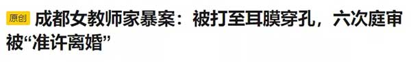 同年6月,成都一女教师被丈夫家暴至左耳膜穿孔,可在男方“是律师挑拨夫妻感情”的坚持下,经过了漫长的六次庭审,才被准许离婚。