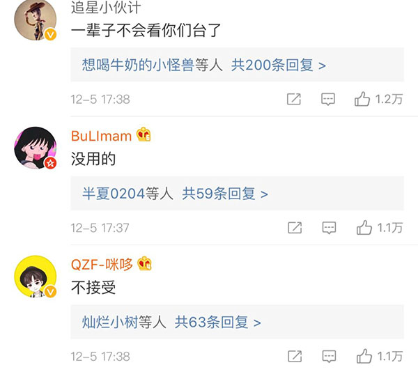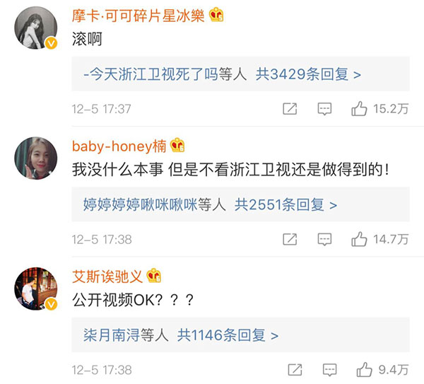 网友对浙江卫视的道歉回应,只有更进一步的愤怒。评论里,对高以翔的所有爱和支持,在这一刻,化作了对浙江卫视深深的怨恨。
