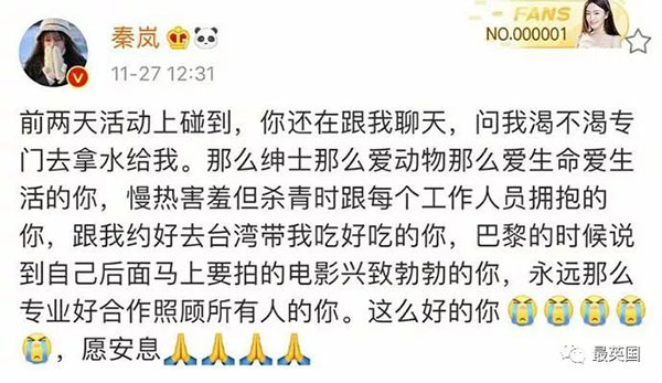 短时间内,为高以翔表达哀思的明星就有了四十多位。