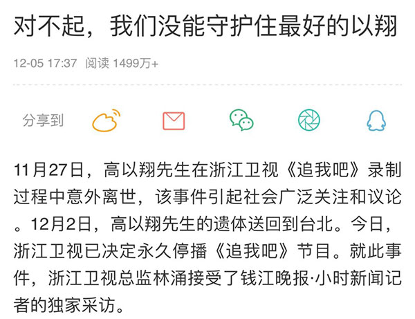 高以翔出事后, 先是各路媒体,伤心或愤怒地向大家报道了这个消息。