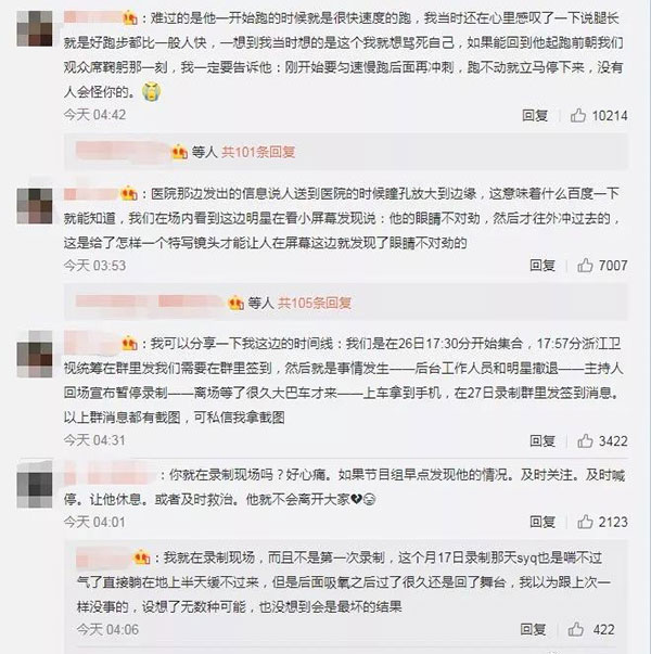 此外,还有不少艺人在录制过程中体力不支、呕吐、吸氧等状况。