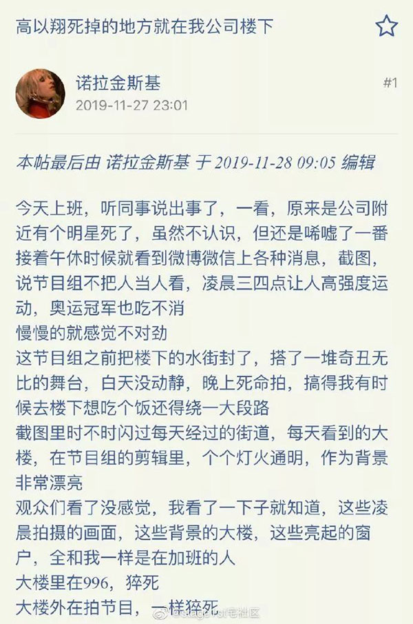 我们死了只能当个背景板,大家评论一句“别太拼了,受不了就辞职吧,大家要注意身体”就完事儿了,剩下的该996继续996.