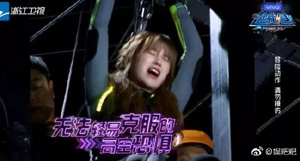 吴宣仪,在挑战的过程中瘦弱的身体拉不住杠杆,硬生生掉了下去,整整55秒没有人上去救援,她就一直陷落在其中,吓尿了围观的粉丝: