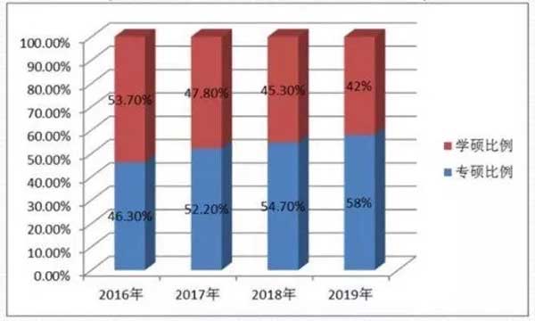 激烈的职场竞争也导致更多的在职人群更加注重投资自己,专硕比例逐年增加至58%。