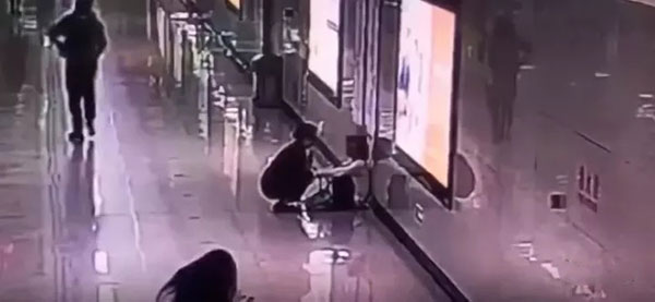 武汉地铁的工作人员发现一名女子独自坐在地铁站的过道口,神情怆然