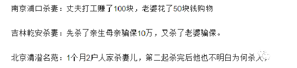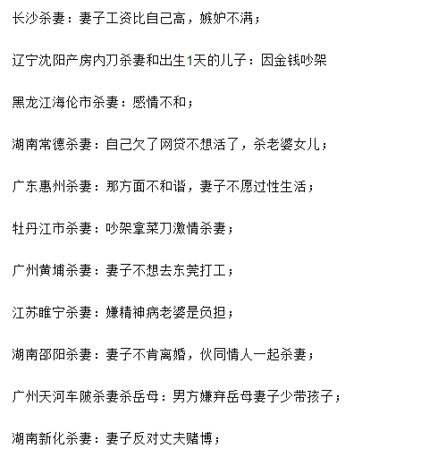 近年来,杀妻案件频生。作者找来了网友们整理的近年来此类案件背后的杀人动机:
