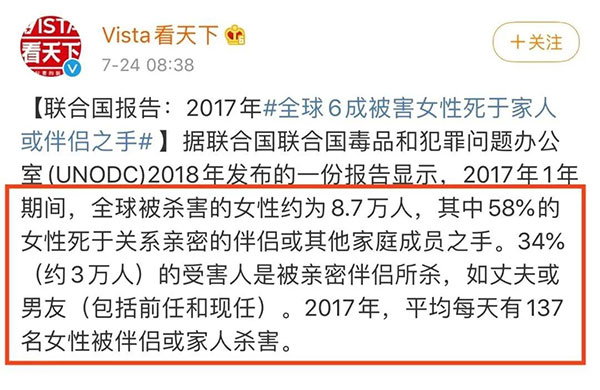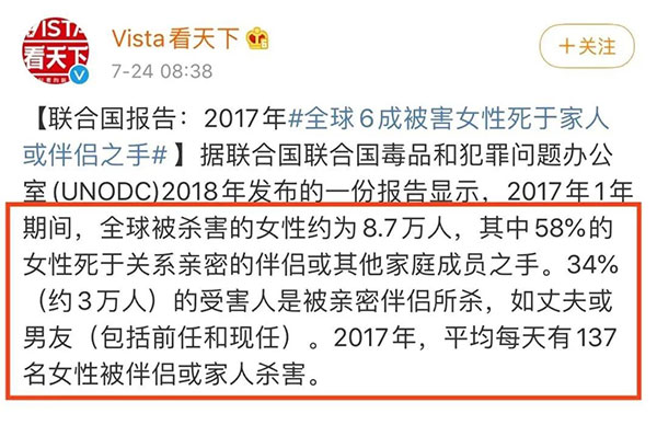 “It’s always the husband…”不止是一句美剧台词,根据联合国报告显示:92%的女性死于亲密伴侣之手。
