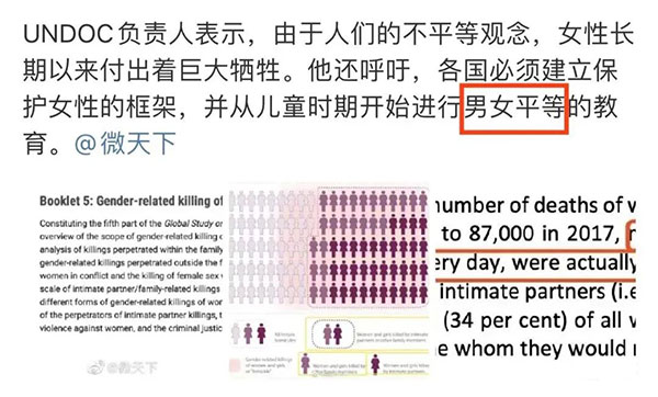 联合国毒品和犯罪问题办公室负责人表示:消除杀女案件最好的解决办法就是普及男女平等教育,不仅如此,还要从娃娃抓起。
