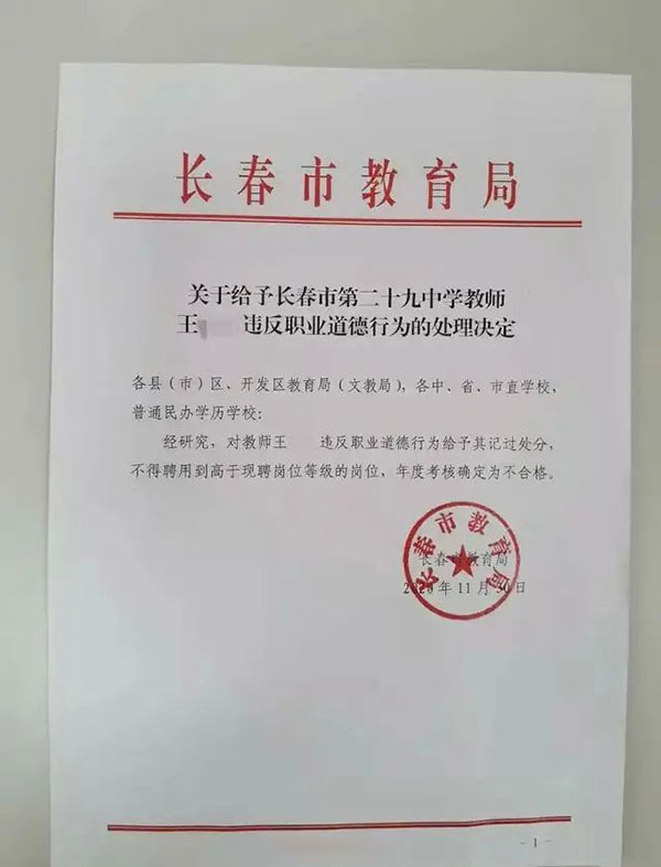 吉林长春,一名女中学老师王某某在给女学生赵某做家教时出轨赵某父亲,之后两人长期保持4年性关系,赵某感觉二人关系不正常,就告诉其妈妈,此后赵某妈妈秘密录制了近百段两人同居和开房的视频,后向教育局投诉。11月30日,长春教育局就此事下发处罚文件。目前该教师已被给予处分,赵某父母也准备离婚。