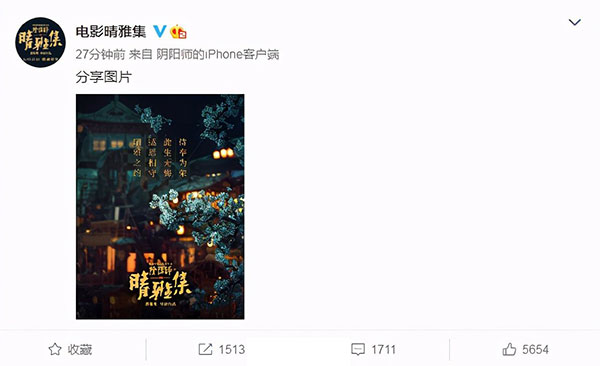 《晴雅集》官微在配图中写道:“晴雅之约,感恩相守,此生无悔,侍奉为荣”,在配文下面依旧是明晃晃的郭敬明导演作品。