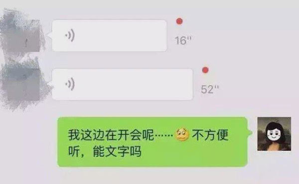 一朋友说,只要看到语音不管是同事还是朋友,留言超过30秒的,看着就不舒服,如果连续好几条,就根本不想打开了,我的感觉也一样。身边一定有部分人聊微信不打字,直接用语音讲,10秒能说清楚的事,一定要发30秒,中间各种停顿、重复、缓冲词以及慢条斯理,听完以后,还不一定讲到点子。几十秒没说明白,再用几十秒解释。
