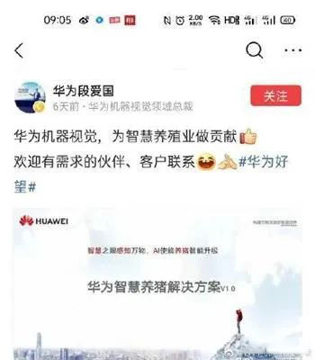 为啥,因为华为宣布要养猪了!近日,华为机器视觉领域总裁段先生发布了一个微头条,隆重推出了华为智慧养猪解决方案。