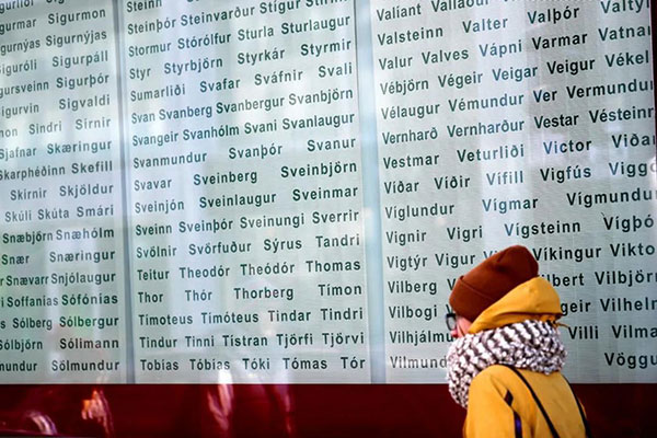 在冰岛给孩子取名得从全国统一备选名单里面选