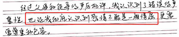 他的父亲在承诺书表示:“不当方式挽回不了真感情”