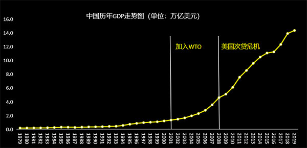正是因为欧美国家在上世纪70-80年代经济达到巅峰的时候,中国开启了改革开放,吸引了大量的外资,促进了中国的经济发展。然后,在2001年的时候,中国加入了WTO,进一步加快了中国经济的腾飞。