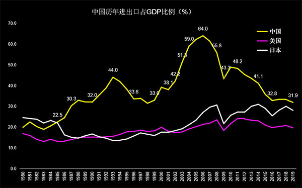我们可以肯定的说:如果在2008-2009年的时候,美国对中国实施打压,那么中国只有投降这一条路,因为那时候的中国严重依赖国际市场,对外进出口比例占到GDP的60%以上。