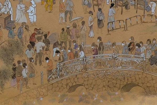 广东佛山一位“90后”小伙陈志杰,以大规模核酸检测为背景,延续《清明上河图》的表现手法,创作了一幅“核酸检测上河图”,被许多网友点赞。