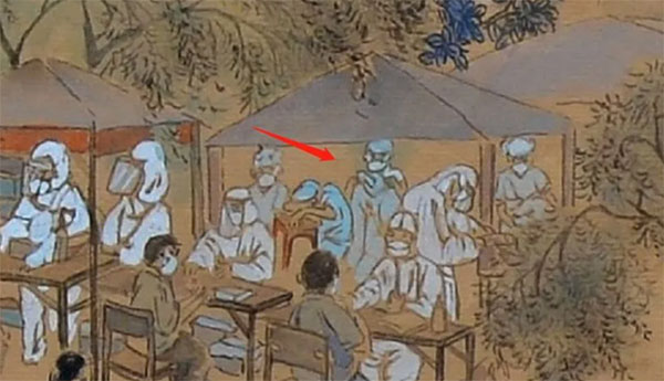 画面风格疏朗大气、古韵十足,画卷内容大到佛山地标,小到戴口罩排队的居民、身着防护服的医务人员、“全副武装” 的消毒人员、新闻记者等跃然纸上,大概有345个人物,15 个景点,“抗疫” 细节满满,极具创意和才华。