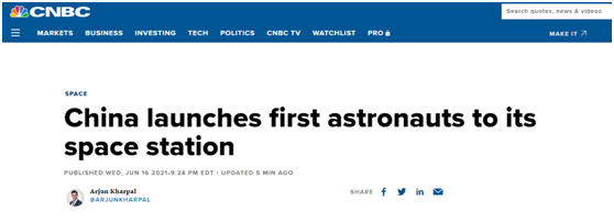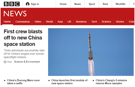 “中国五年来首次载人航天飞行”“中国迄今为止时间最长的载人航天任务”“中国空间站”,几乎是外媒第一时间报道中提及最多的关键词。