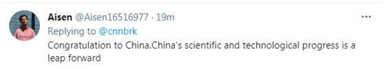 “祝贺中国。中国科技进步堪称飞跃”↓