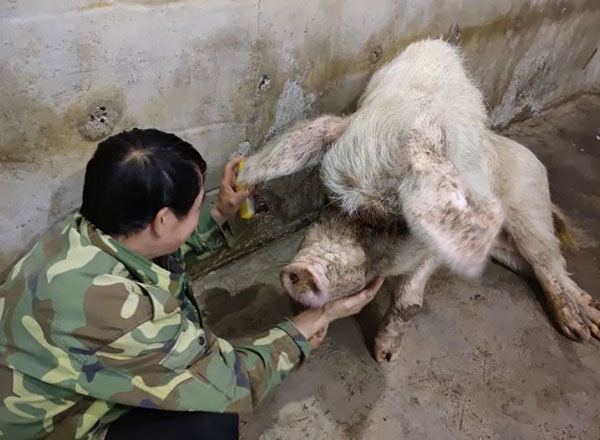 “猪坚强”原本是成都彭州市龙门山镇团山村村民家的一头大肥猪。