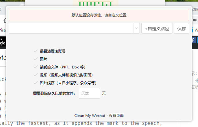 小提示:如果用户修改了“文件管理”目录,那么在使用CleanMyWechat工具的时候就会出现一个错误提示。这时先打开工具的设置窗口,点击“自定义路径”按钮,在弹出的窗口中选择新的文件管理目录,然后再进行“保存”操作,这样工具就可以重新完成缓存信息的扫描和清除操作。