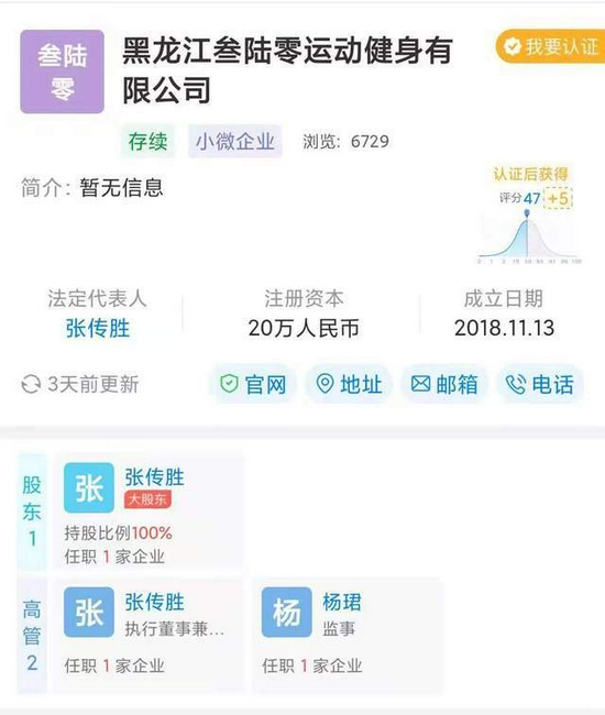 据天眼查App显示,“哈尔滨360减肥训练营”关联公司为黑龙江叁陆零运动健身有限公司,成立于2018年11月,主要经营范围含室内休闲健身服务;户外体能拓展、娱乐性军事训练场地服务。值得一提的是,据黑龙江叁陆零运动健身有限公司2020年度报告显示,该公司参保人数为0.