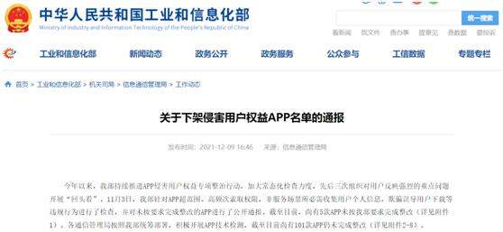 工信部还要求,相关应用商店应在本通报发布后,立即组织对名单中应用软件进行下架处理。针对部分违规情节严重、拒不整改的APP,属地通信管理局应对APP运营主体依法予以行政处罚。