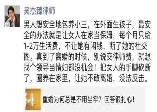经手过无数离婚案子的吴杰臻律师曾经扎心地说过: