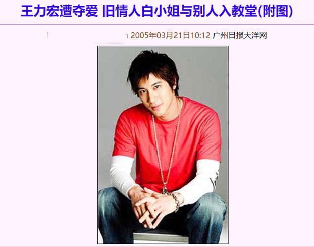 两人在大学恋爱了4年,是王力宏最纯真的一段感情。不过相对来说白小姐为王力宏付出更多,毕业后对方甚至为王力宏放弃理想。
