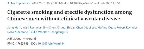 一篇2003年的流行病学调查包括了7684名中国男性,他们平均年龄为47岁,没有血管疾病。