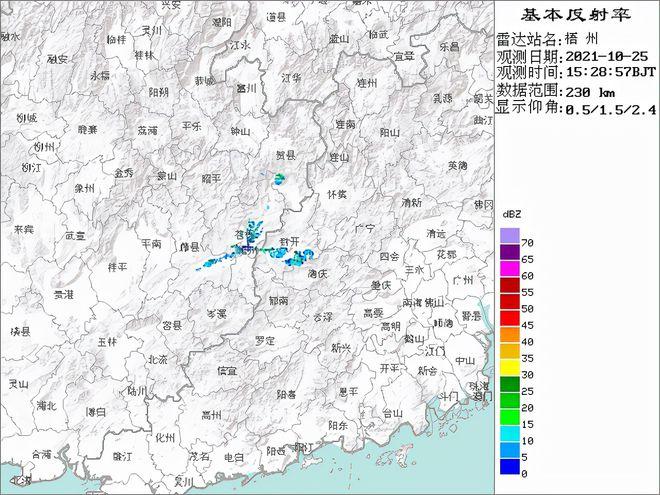 其次是雷暴天气,飞机虽然有避雷设施,但如果进入到强雷暴之中,也可能会出现事故。但从中央气象台发布的雷达图中可以看出,梧州附近并没有雷暴。
