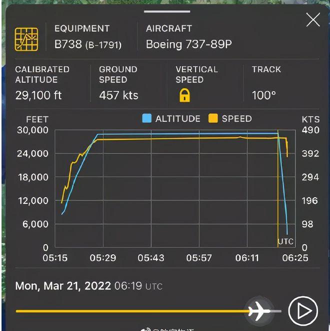 据了解,东航MU5735是一架波音737-800NG客机,注册号为B1791,机龄6.8年。这架飞机属于波音737系列飞机,它是美国波音公司生产的一种中短程双发喷气式客机,到现在为止已经发展出了14个型号。