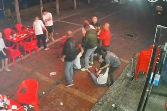 视频显示,这样的暴行能够在众目睽睽之下发生,很大一个原因就在于,路人中没有见义勇为者。这是视频截图,可以看到饭店就餐的好几桌人都坐在那一动不动。