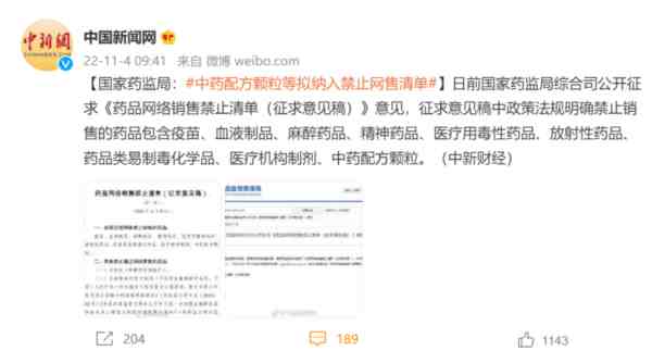 从这次公布的征求意见稿来看,医疗机构的院内制剂和中药配方颗粒是准备一刀切的禁止通过网络销售了。