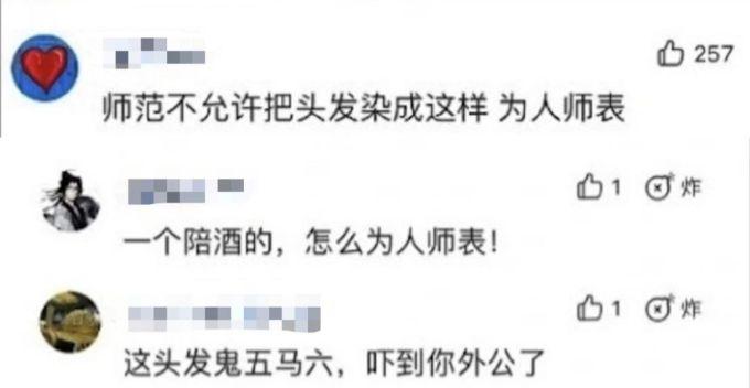 她只是发布了一张合照,照片中自己拿着师范大学研究生的录取通知书去探望病床上的爷爷,却因为一头粉发被造黄谣,说她和爷爷是“老少恋”;被荡妇羞辱为“陪酒女”;被侮辱谩骂,说为人师表不能染头发……