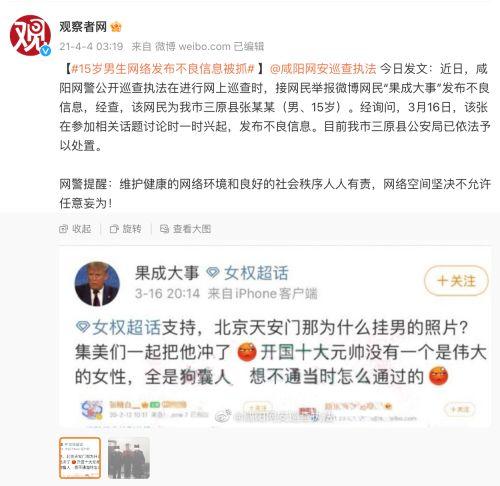 即便她谎报年龄,未成年也不是逃避一切法律制裁的借口。两年前就发生过「15岁男生网络发布不良信息被抓」的事情。一个咸阳的未成年人因为反串女权发言钓鱼,半个多月后被当地公安局通报「已经依法处置」了。秋秋老师的违法情节严重得多且具有明显的主观恶意,现在也过去了半个多月,但是官方至今没半点消息。