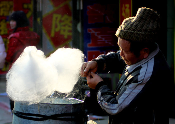 公园门口是卖棉花糖的,又白又松软,感觉风一吹就会跑似的,阳光照射下感觉更白了。几个孩子围着卖棉花糖的老头,目不转睛地等待着属于自己的那一团。小时候没吃过棉花糖,努力地找却没有找到这部分的记忆,只好从旁边卖红苕丝的阿姨那里寻找点珍贵的记忆了。小时候农村里零食较少,煮熟晒干的红苕丝不知道被我们吃了几箩筐,当然还有更美味的盐花生。