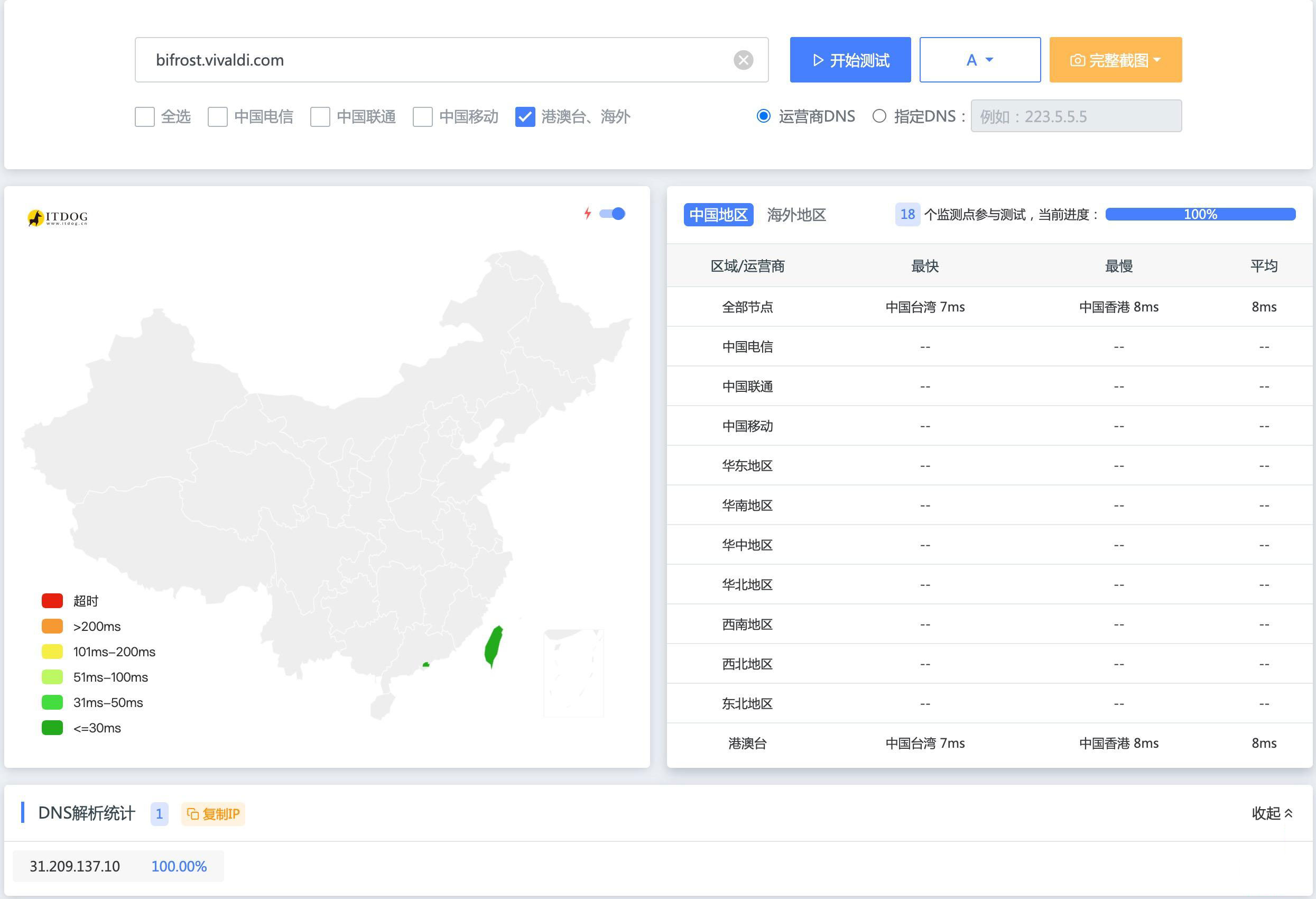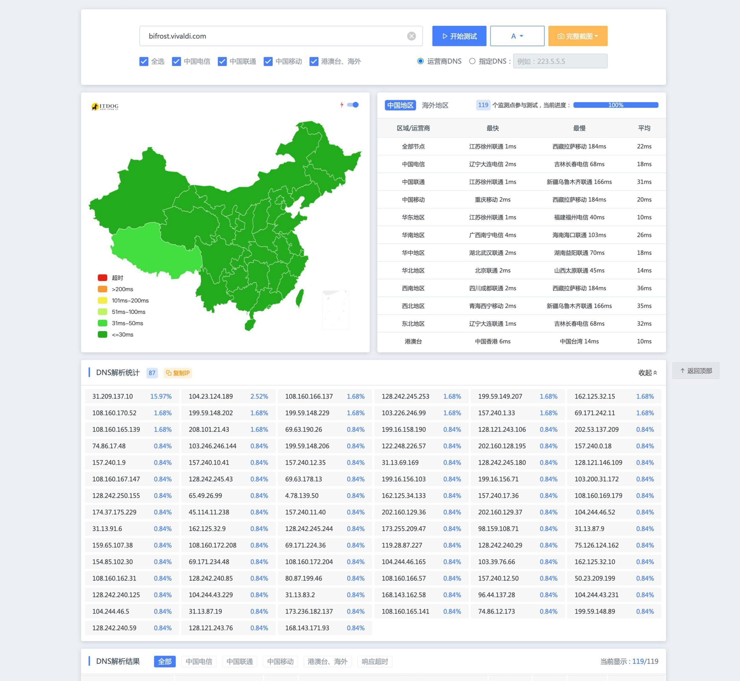 去 itdog 查询域名解析,别选国内的 dns,选了会返回一堆没用的: