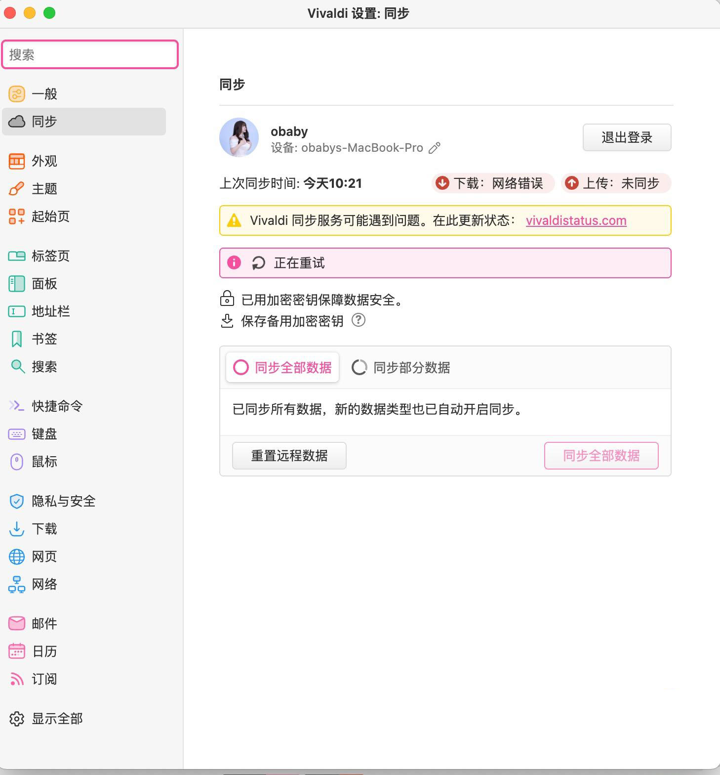 后来,在某年某月的某一天,vivaldi 的同步服务变得和 google 一样了。直接同步是无法同步的,其实手机上的同步倒是没那么重要,关键是不同的电脑设备间的同步就变得异常痛苦。在一台电脑上注册了,记住密码,到另外一台电脑上还得重新输入账号密码登录。