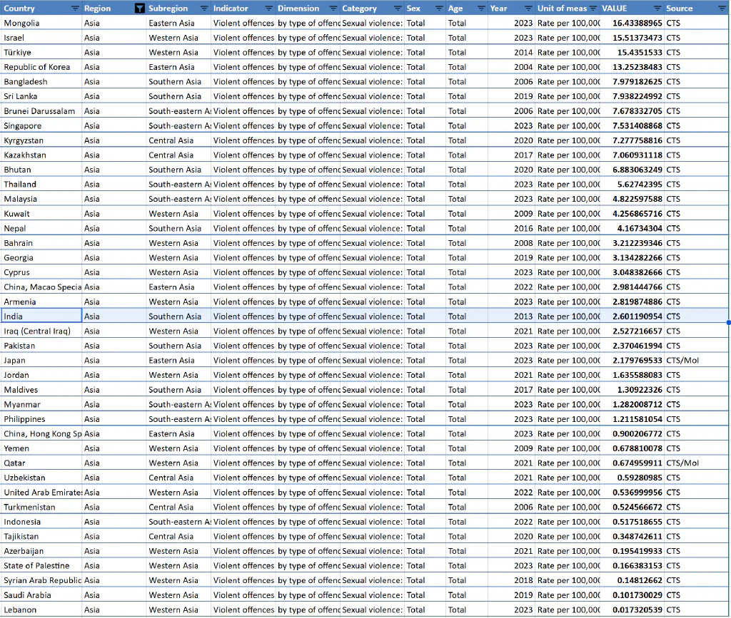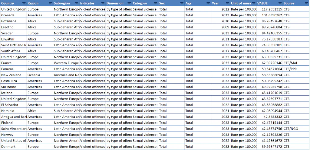 我在联合国打击毒品和犯罪局官网下载了 各国强奸案件数据 ,这不看还好,一看吓一跳。