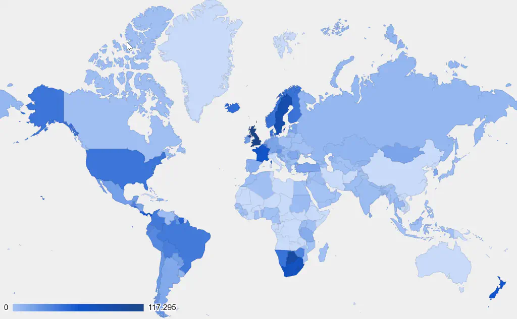 如果只看亚洲部分数据,系统性偏差倒没有全球那么大,最高的蒙古是十万分之 16,但与最低值也差了 1000 倍以上,即便剔除最高值与最低值,以色列和沙特的差距也达到 150 倍。